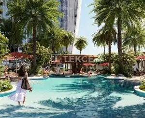 Apartments for sale in Business Bay, Dubai are situated 5 minutes from the closest metro station, 7 minutes from Burj Khalifa, 16 minutes from Palm Islands, and 20 minutes from Dubai International Airport. The largest green area of the region is located just opposite the Safa Park.