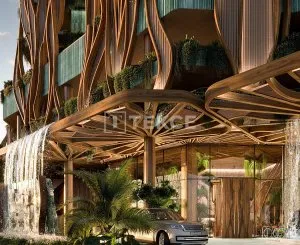 The interiors are designed to reflect the natural world, blending organic elements with luxurious materials. Spacious rooms are crafted with high-quality natural stone and engineered wood flooring. The kitchens feature fully customized, sustainably produced joinery, European appliances with high energy ratings, and signature stone countertops. Each apartment connects to nature through private terraces with dining areas, hammocks, and features like private waterfalls and pools, promoting seamless indoor-outdoor living. Large floor-to-ceiling windows allow abundant natural light, enhancing the serene atmosphere. Master bedrooms are luxurious, featuring fitted wardrobes, while master bathrooms boast high-quality sanitary ware and natural stone finishes. The overall design prioritizes balance and harmony, creating a peaceful and relaxing sanctuary.