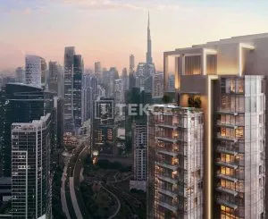 Rising in Dubai Business Bay, this luxury project has a great range of options such as studio apartments, 4-bedroom apartments, penthouse apartments, and a duplex with a private pool. Architecturally elegant, innovative, and integrated into the urban environment, this eye-catching building is located in an exclusive location offering residents iconic views of Burj Khalifa, Dubai Canal, the Sea, and Al Habtoor. The project offers a unique opportunity for those who want to experience the heights of luxury in the center of Business Bay. Among the facilities offered in the project, there are many luxury facilities such as barbecue areas, a fitness center, a green environment, a spa and sauna. In addition, activities such as children's playgrounds, basketball courts, and outdoor swimming pools increase the quality of life. Furthermore, services such as restaurants, retail outlets, and supermarkets are also close by to fulfill the needs of the residents. All these amenities are designed to offer residents a cozy, comfortable and fulfilling lifestyle.